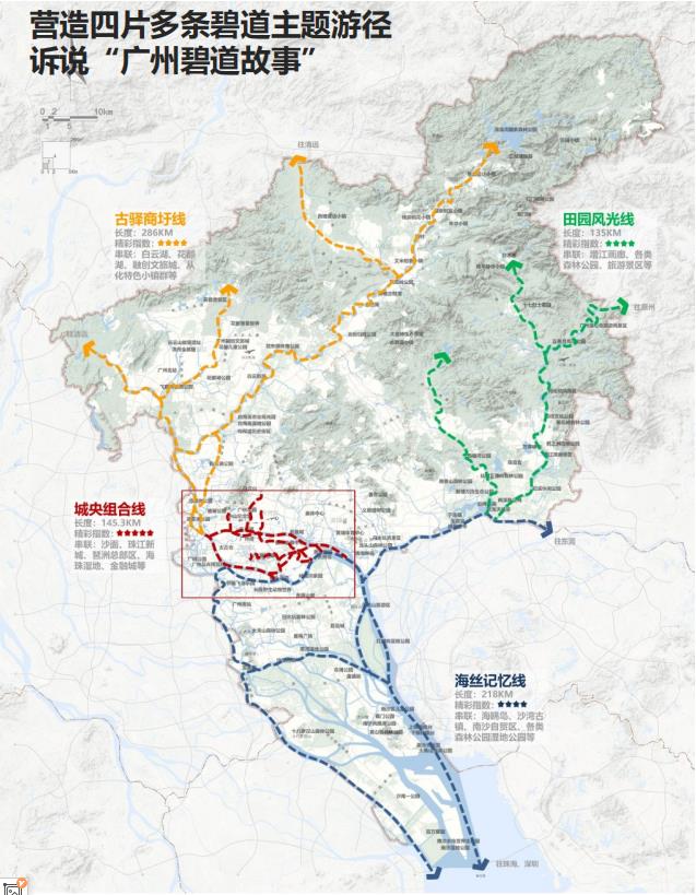 根据规划,碧道的总体布局为:三大生活圈、广州新六脉。