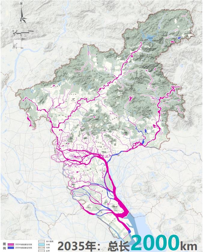 远期到2035年,全市建成碧道达到2000公里,形成一系列特色碧道和主题场景,形成覆盖全市碧道网络,实现“水清岸绿、鱼翔浅底、水草丰美、白鹭成群”的美好愿景,“广州碧道”品牌成为大湾区靓丽名片。