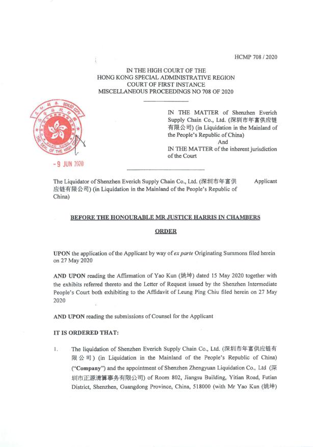 近日,香港高等法院作出裁决,认可深圳市中级人民法院审理的深圳市年富供应链有限公司(以下简称"年富公司")的破产清算程序以及管理人身份,并为该管理人在香港全面履行管理人职权提供司法协助。