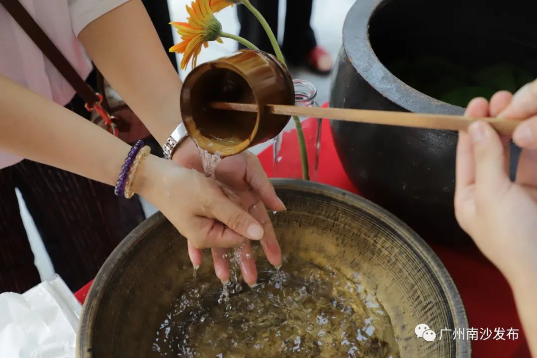 为表达对传统手工艺的尊重,入场前参与活动的市民需要先进行净手礼:用黄皮叶泡的清水洗手。