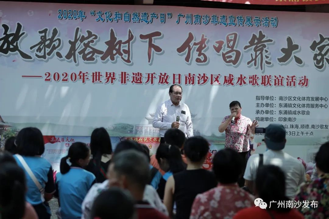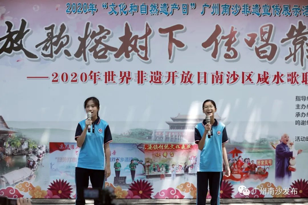 从佛山、中山、珠海等地赶来的咸水歌传承人和爱好者与东涌本地咸水歌友们轮番“斗歌”,或独唱、或对唱,引来街坊阵阵掌声。来自东涌中学初一年级的几位同学也拿起话筒为大家献上了咸水歌童谣。