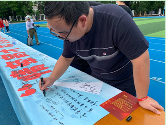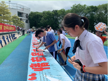 在主席台签名墙前,记者遇到了高三(1)班的黄嘉禧同学。他说,“二模当天我过完了自己的18岁生日,圆梦18岁生日本应该是高考结束的那一天。‘成人礼’给我们一种仪式感,赋予我们成长的意义——回顾过去是感恩,面向未来是责任——所有同学写下的志向、期许、希望,都是我们在成人这个节点上极特殊的一种体验。如果没有这次成人礼的触发,它会深藏在每一个人的心底,有些事情在十几岁时候想的,未来不一定能够实现,但是今天能把它写出来的感觉很好。”