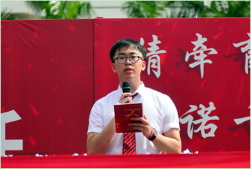 “在18岁成年之际,我面对国旗庄严宣誓:我立志成为有理想、有道德、有文化、有纪律的社会主义公民,遵守宪法和法律,热爱社会主义社会,正确行使公民权利,积极履行公民义务,自觉遵守社会公德……”成人礼上,学生们每人郑重签署下一份“十八岁成人纪念书”,立志以新青年、新生活、新形象成为一个负责的人。另外,每个同学还收到了郑校长代表学校和全体老师赠送的《宪法》,让学生们懂法、知法,做新时代的法治青年。