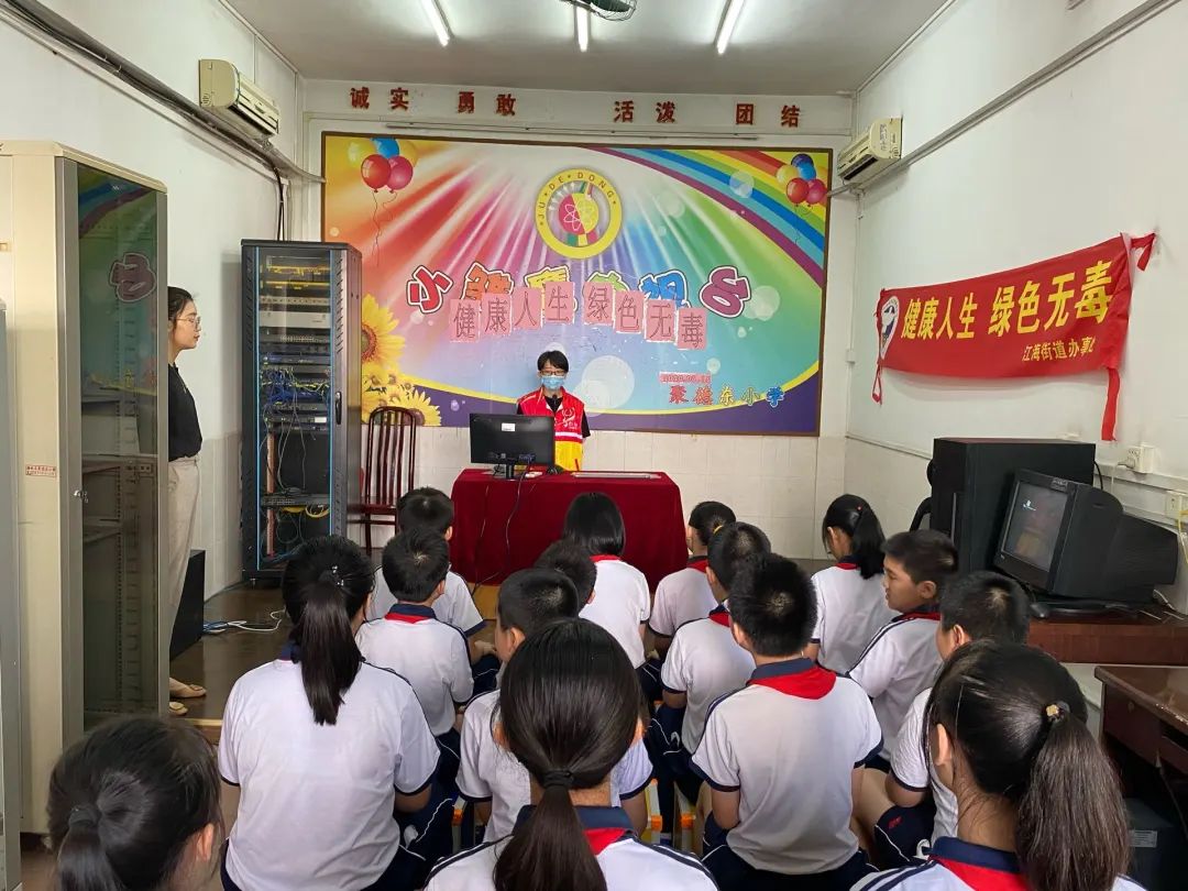 6月15日上午,江海街联合海珠区禁毒项目“启帆之家”禁毒社工、聚德东社区、聚德东小学一同开展以“健康人生,绿色无毒”为主题的禁毒知识宣讲活动。活动采用线下讲座和线上广播的形式进行。