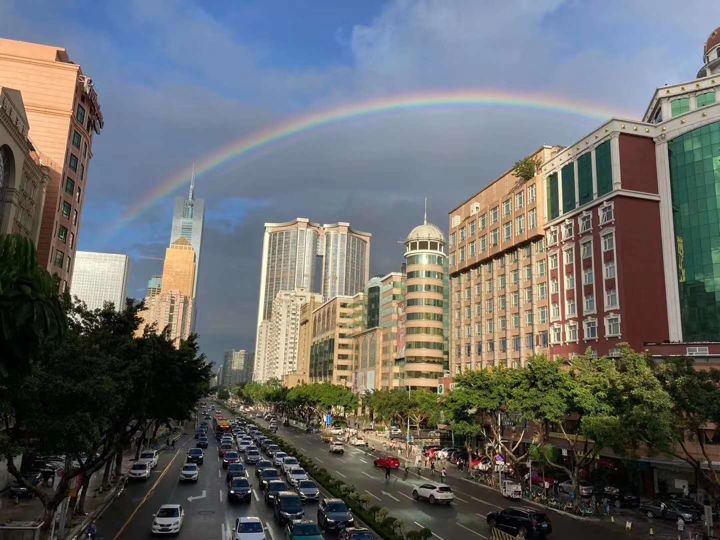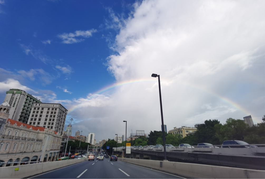 天桥上拍下的彩虹