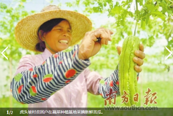 “我们种植的果蔬既安全又好吃,自从‘粤菜师傅’工程走入村,果蔬不愁卖不出去,基地也每天都需要人手帮忙,所以我现在一有空就会来这里上班!”34岁的虎头坡村村民周小珍满脸骄傲地说,现在自己每月能多赚两三千元帮补家用,她还计划在基地工作时多学点种植技巧,等“扶贫小集市”开起来后,也把自家的果蔬拿出来售卖。