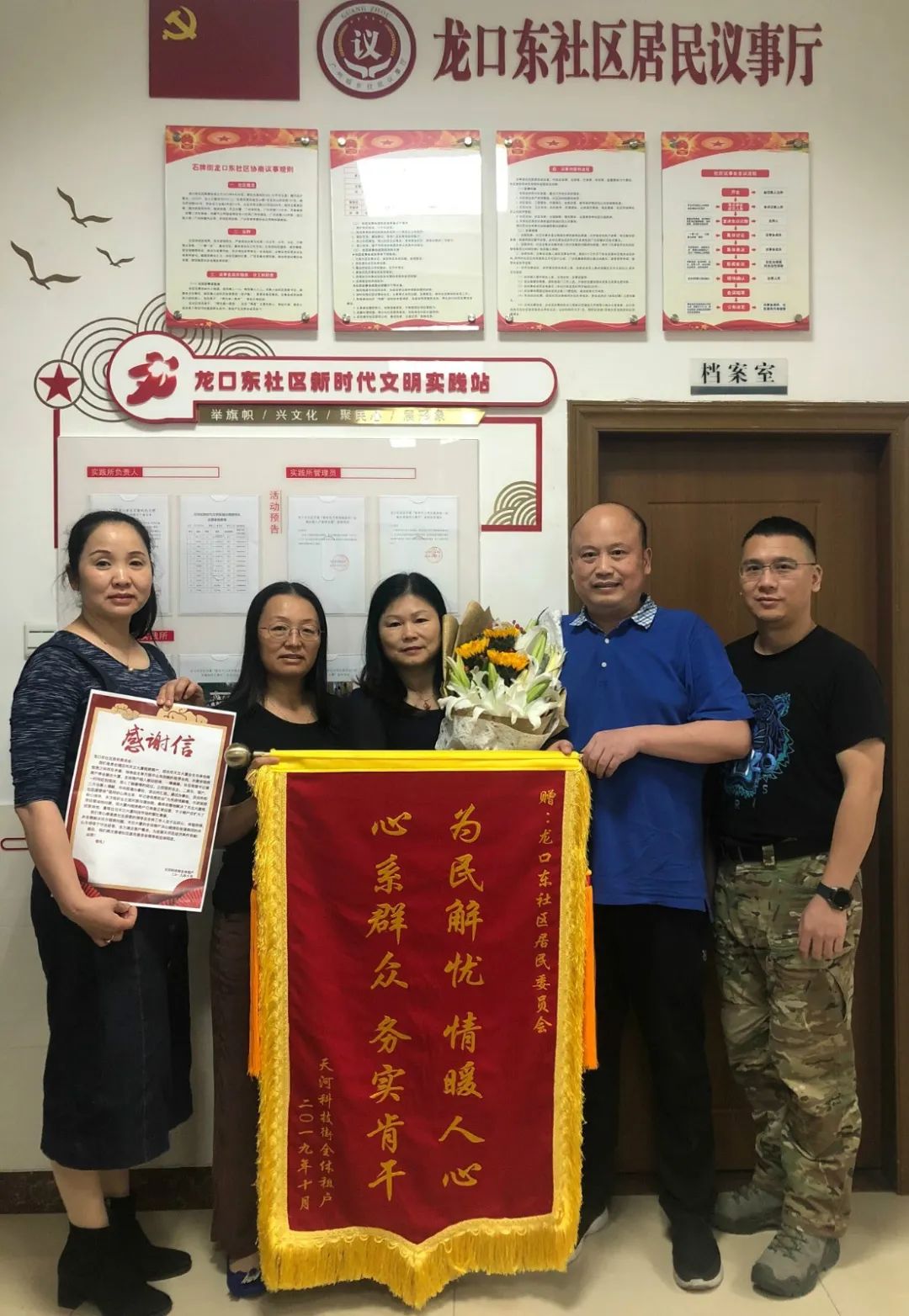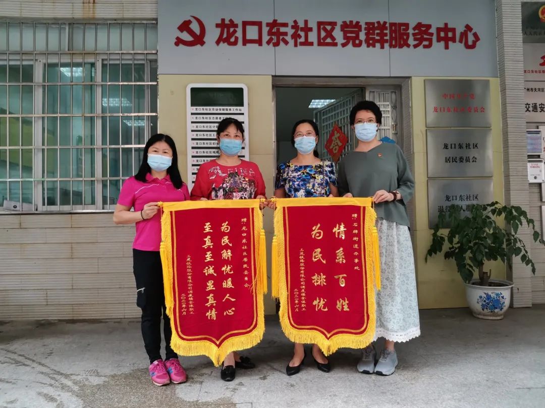 龙口东社区居委会收到企业、居民送的多面锦旗