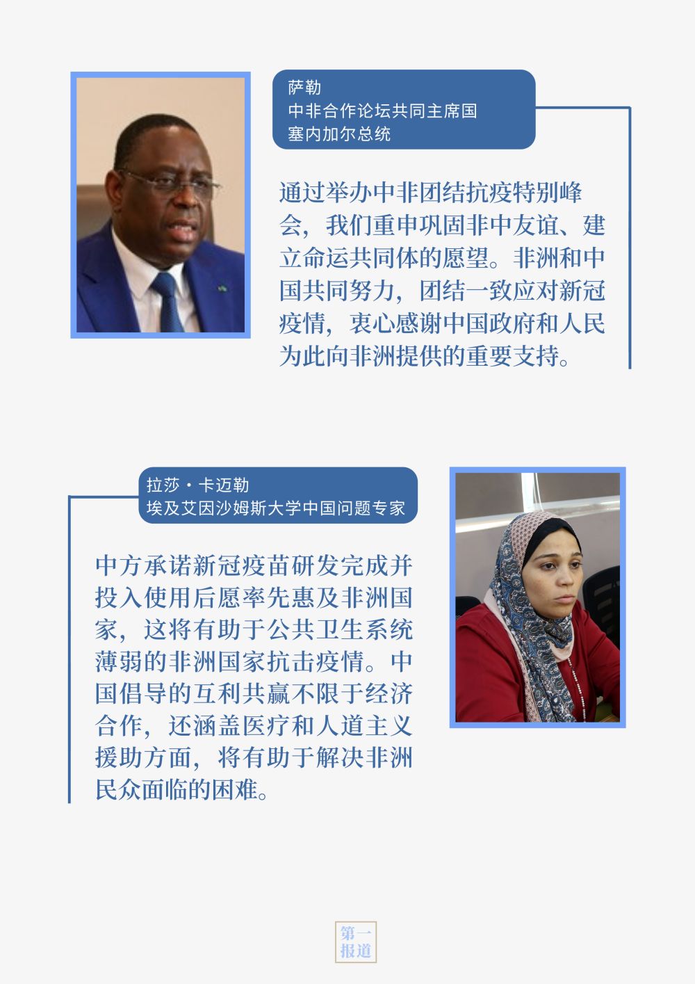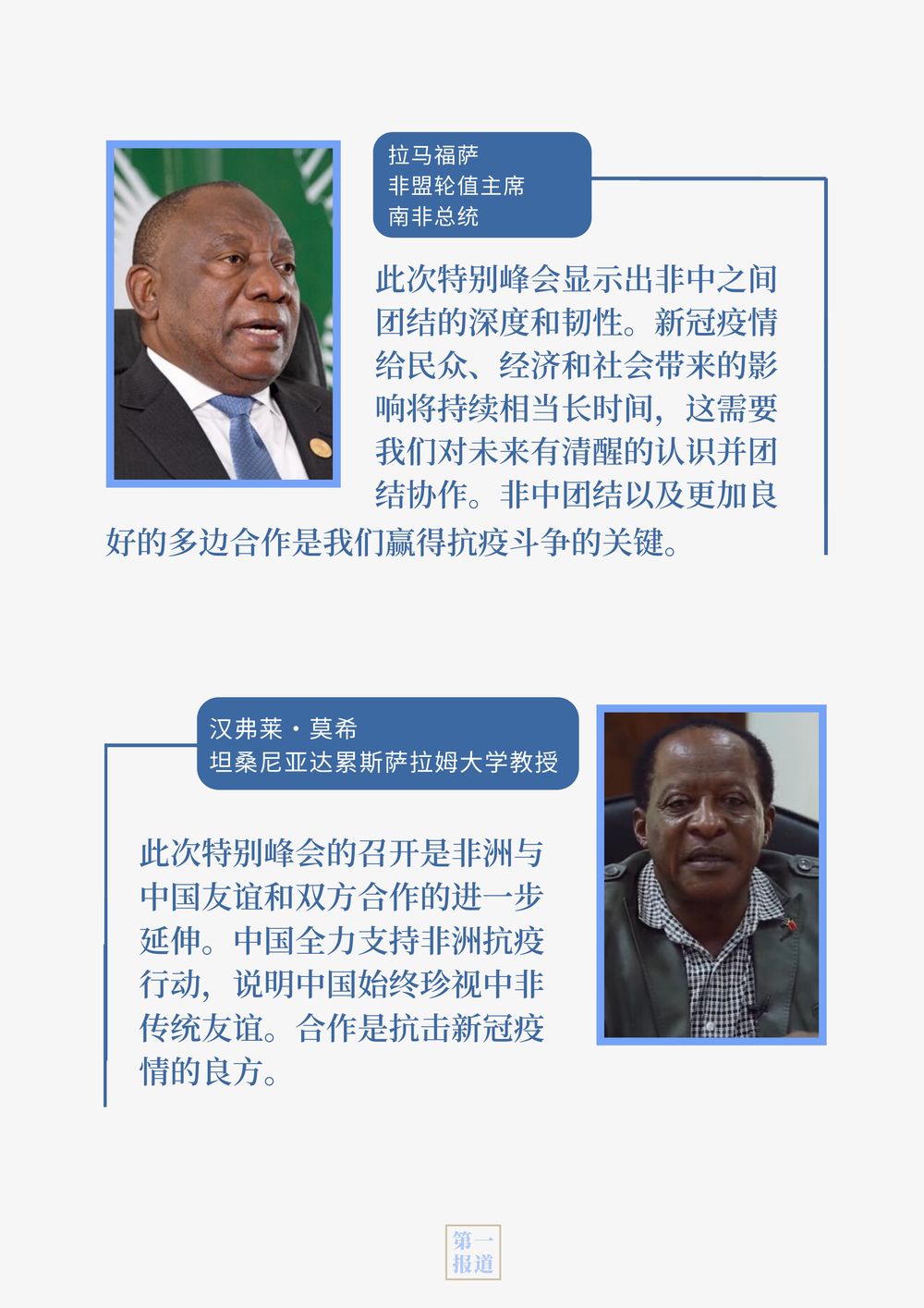 在此次峰会上,习主席提出四个“坚定不移”,为中非抗疫合作指明方向,为中非关系未来擘画蓝图。一句句真诚倡议、一项项务实举措,让非洲国家感受到兄弟无远的中国情谊,让国际社会感受到团结抗疫的中国担当。