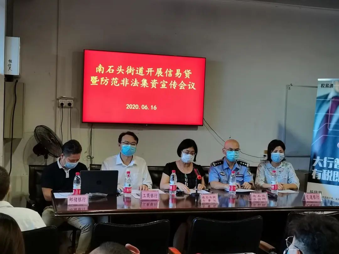 日前,南石头街道办事处联合南石头派出所、工商银行、交通银行、邮政储蓄银行在南泰路商品批发市场管理处二楼召开“南石头街道开展信易贷暨防范非法集资宣传会议”。