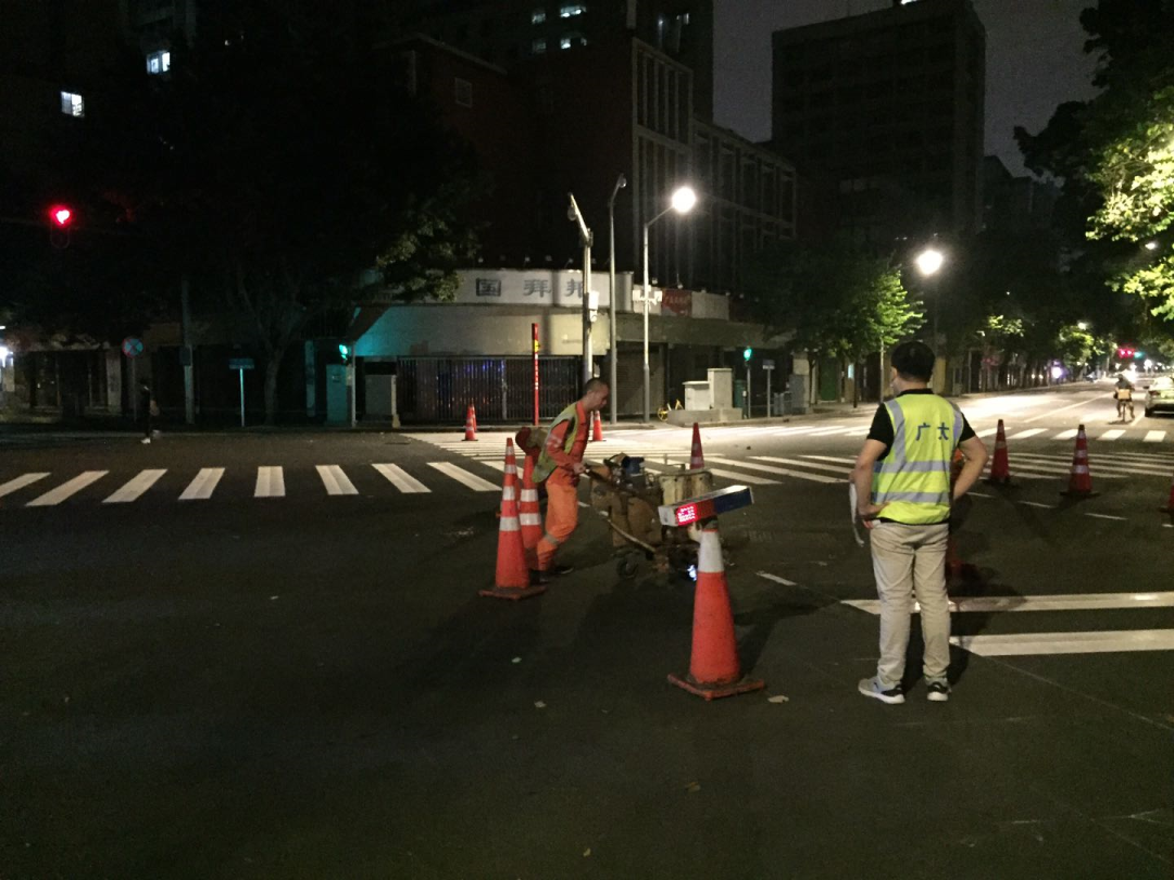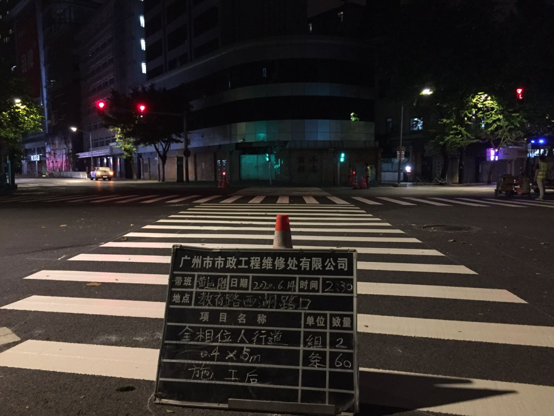 上周六凌晨,越秀交警大队的工作人员来到西湖路-教育路路口,悄悄地为这个地方“添新衣”。
