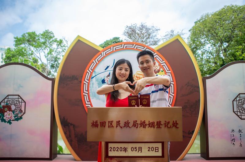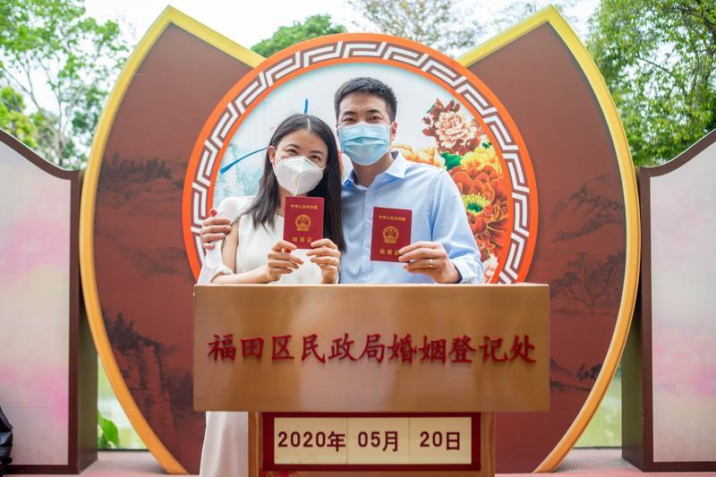 ▲2020年5月20日,市民在福田区民政局婚姻登记处办理婚姻登记