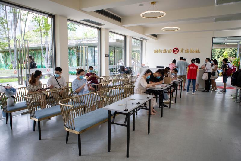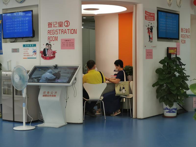 ▲6月17日,市民在南山区民政局婚姻登记处办理婚姻登记