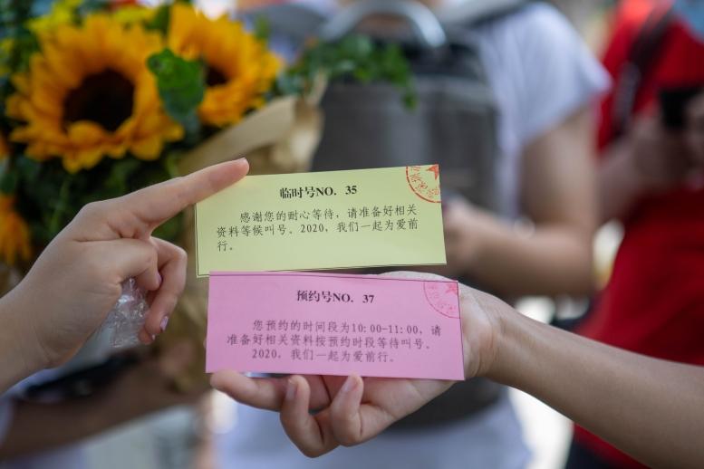▲2020年5月20日,市民在福田区民政局婚姻登记处等待叫号