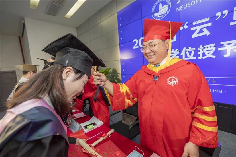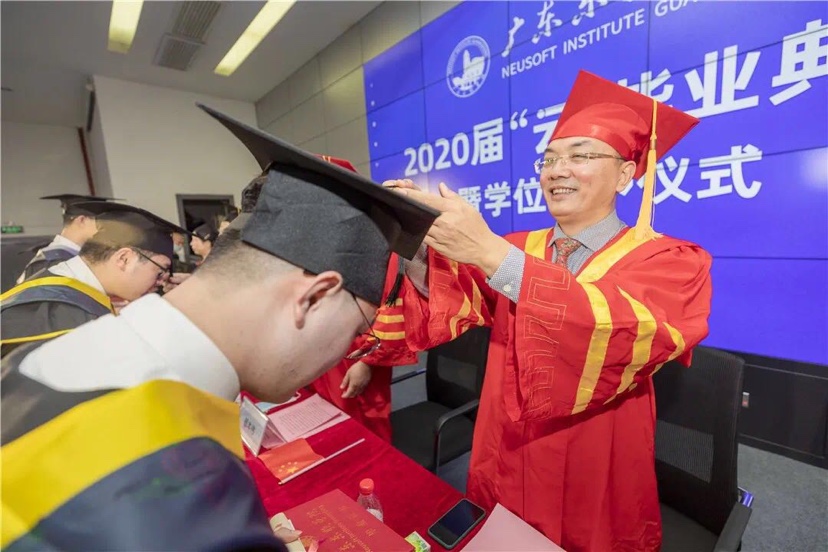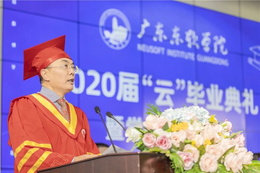 “我和你们约定,在新冠疫情结束后,学校一定再给你们举办一场正常的毕业典礼!届时,你们将以东软学院2020届校友的身份被邀请回校,我和其他校领导和老师们将亲自为你们拨穗正冠、补拍合照、共叙未来!”