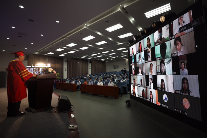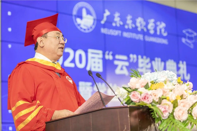 继云端上课、云端考试、云端答辩后,广东东软学院2020届2000多名毕业生又迎来了“云”毕业典礼。在“云”毕业典礼上,广东东软学院校长、学位评定委员会主席杨利博士在致辞中表示:“我们深知:毕业典礼是大学教育最庄重的仪式,是学校送给你们最大的离别礼物,是同学们一生中最重要的时刻之一。因此,无论如何不应该给同学们留下遗憾。”