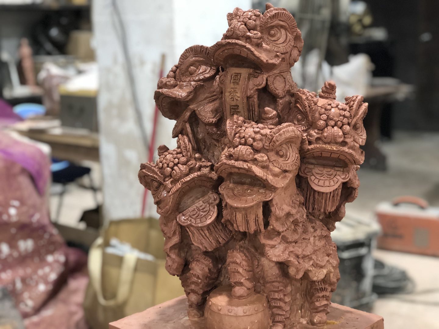 农历五月初五是中国传统节日端午节,在岭南地区,舞狮、赛龙舟、食粽子通常是端午节期间的传统习俗。作为岭南文化的重要组成部分,端午节具有广泛的群众基础。端午临近,广州雕塑院院长许鸿飞特别制作了一尊舞狮雕塑。记者看到,雕塑中的五个狮子精神抖擞,栩栩如生,其中最高的狮子口中还吐出一个联子,上面写着“国泰民安”。“今年太特殊了,国泰民安是我对祖国和人民最好的祝愿。”