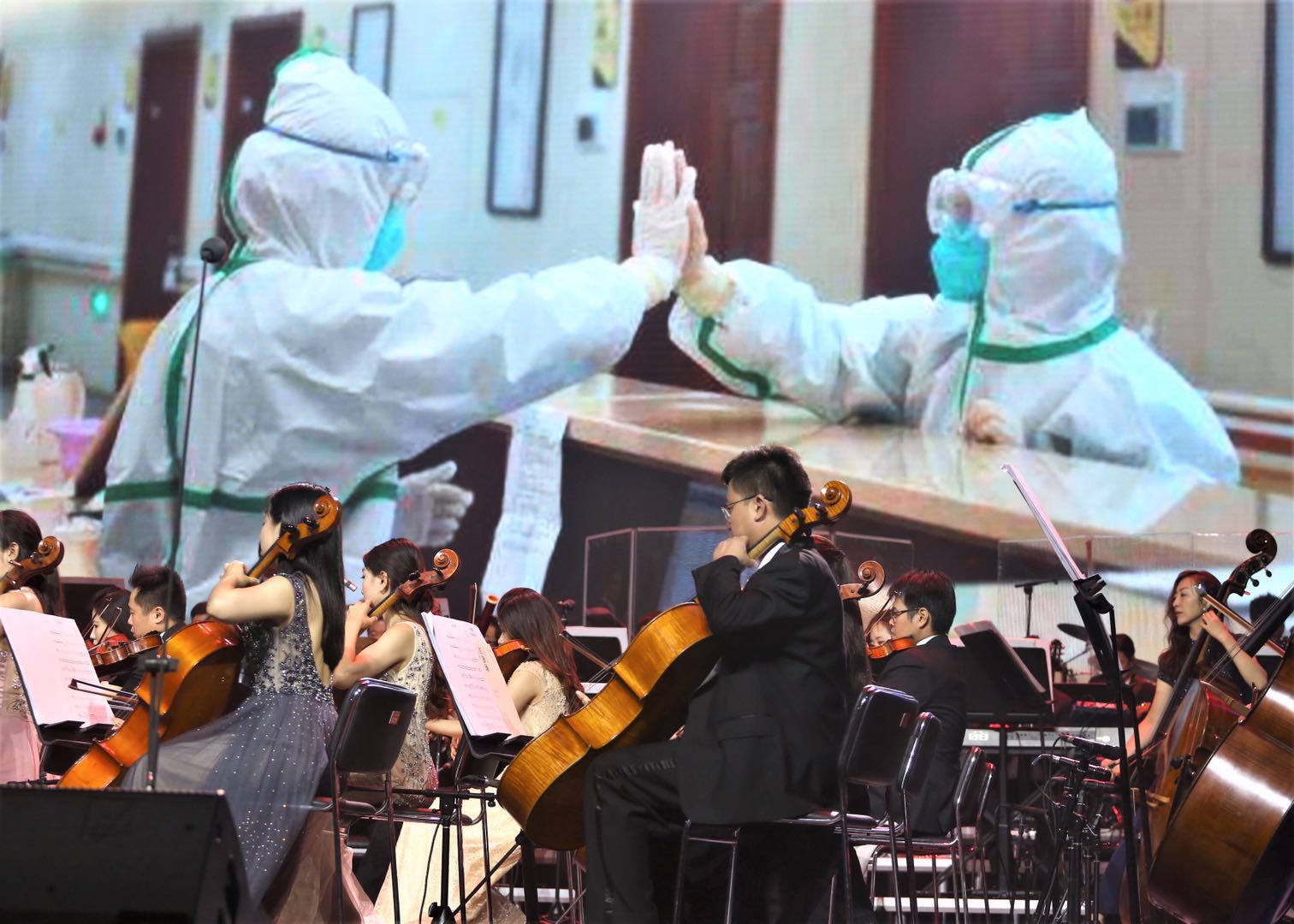 据悉,面对新冠肺炎疫情,珠影乐团以最快速度投入创作,在原有基础上进行创作、改编,一个月完成了新版大型流行交响诗画《我爱你中国》。