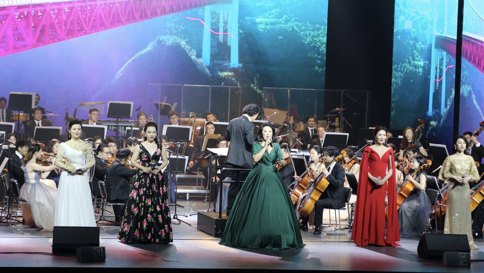 当晚演出尾声,著名女高音歌唱家崔峥嵘带领她的学生李妍、舒淞靖、黄仪、熊培婷,一起演绎叶佩英原唱版《我爱你中国》,掀起了另一个高潮。