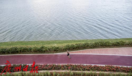 奔跑的律动踏在蜿蜒的红色沥青绿道上,