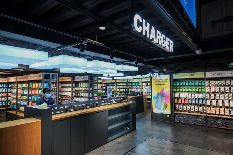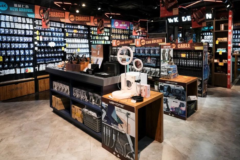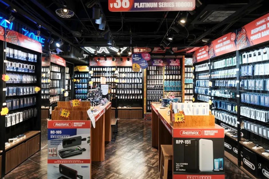 与小档口密密麻麻堆积商品、装修风格五花八门相比,REMAX店内的货架上摆满了各式各样的电子配件,每一个种类的产品都有不同的款式,彷如一个大型的超市,顾客可以在此自由选购。