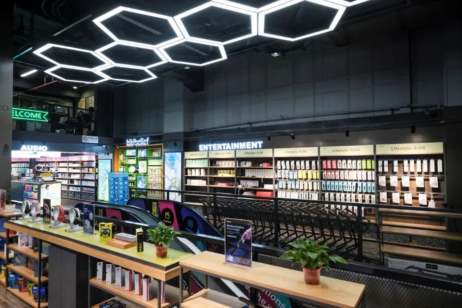 该店总监阴法明告诉记者,该店是在广州市内规模最大、产品展示最齐全的旗舰店,包含音频、线材、车载、能源、运动类的数码配件及其他生活产品。“我们这里相当于一个产品的集中展示区,向海外客户展示最新、最齐全的产品。” 他还提到,过去的店面只有100多平方米,得知明之升数码港能把一层空间租给他们后,便决定进驻。他表示,店面的扩大和提升对于企业和品牌发展的作用非常明显。“有外国客户现场参观后,回到自己的国家,也开了类似的旗舰店。”