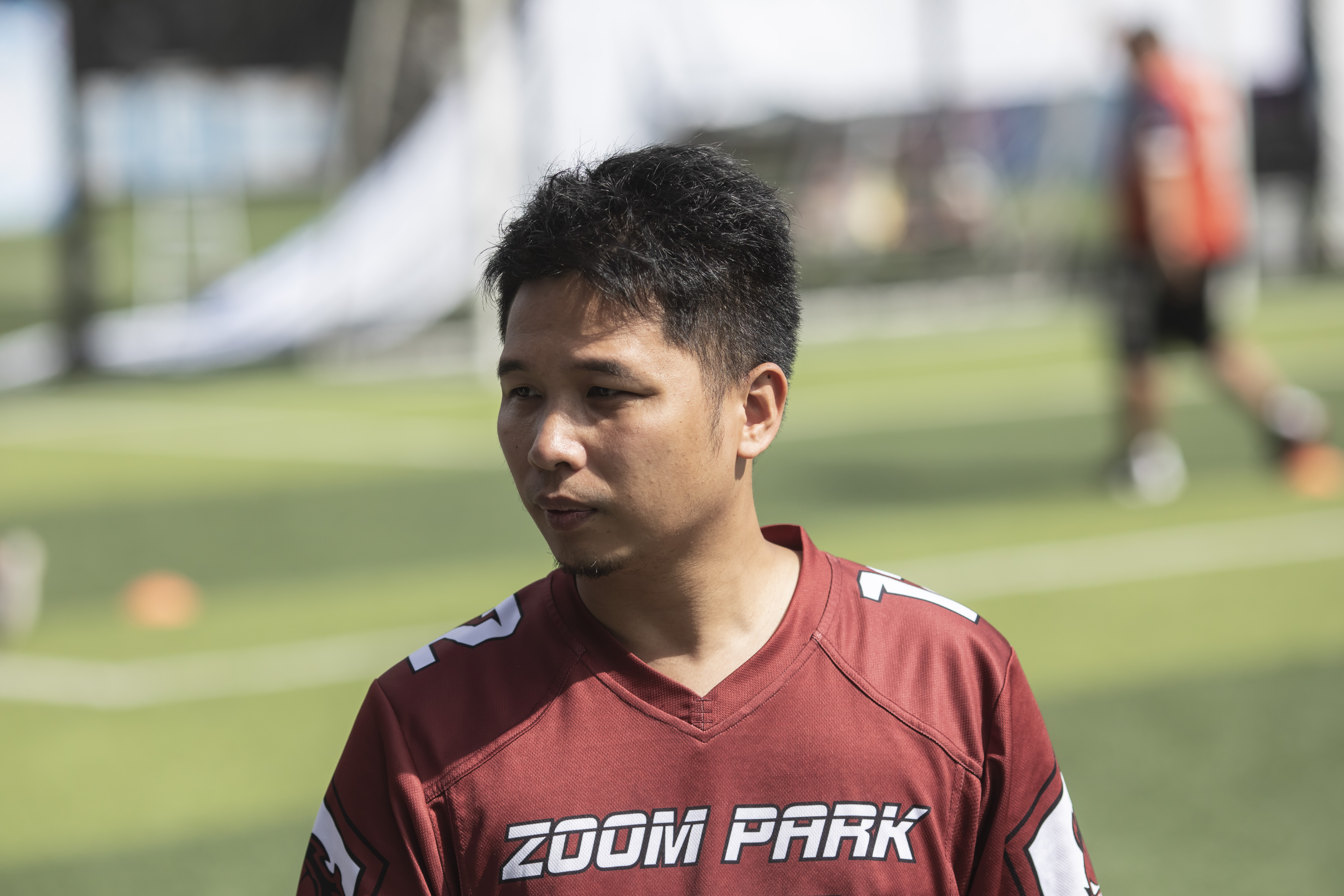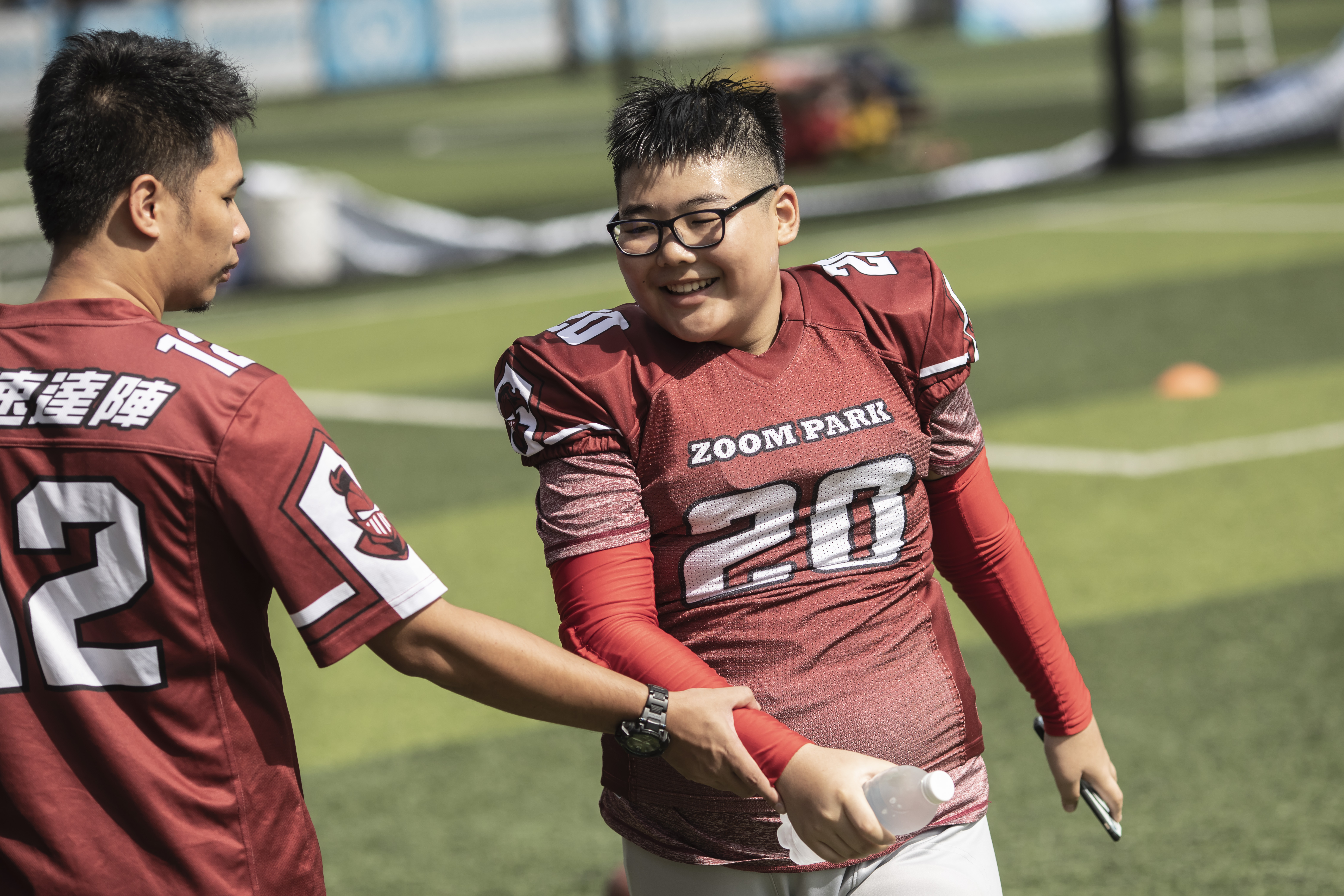 Anson告诉记者,他此前去过美国,感受了当地的橄榄球文化,回到广州后,便参加了本地的一个橄榄球队,并开始进行系统性的训练。“我渐渐感受到了这项运动的奇妙之处,橄榄球比赛就像是一场战争,并不是只靠蛮力,每个攻防回合,大家都要在一起商量进攻和防守战术,每个人都分工明确,每个场上位置都十分重要,没有人可以偷懒。所以它让人必须学会沟通,这一过程中既开发了思维,也强健了体能。每个橄榄球职业运动员要想成功,他训练的一半时间必然是在健身房里度过的。”