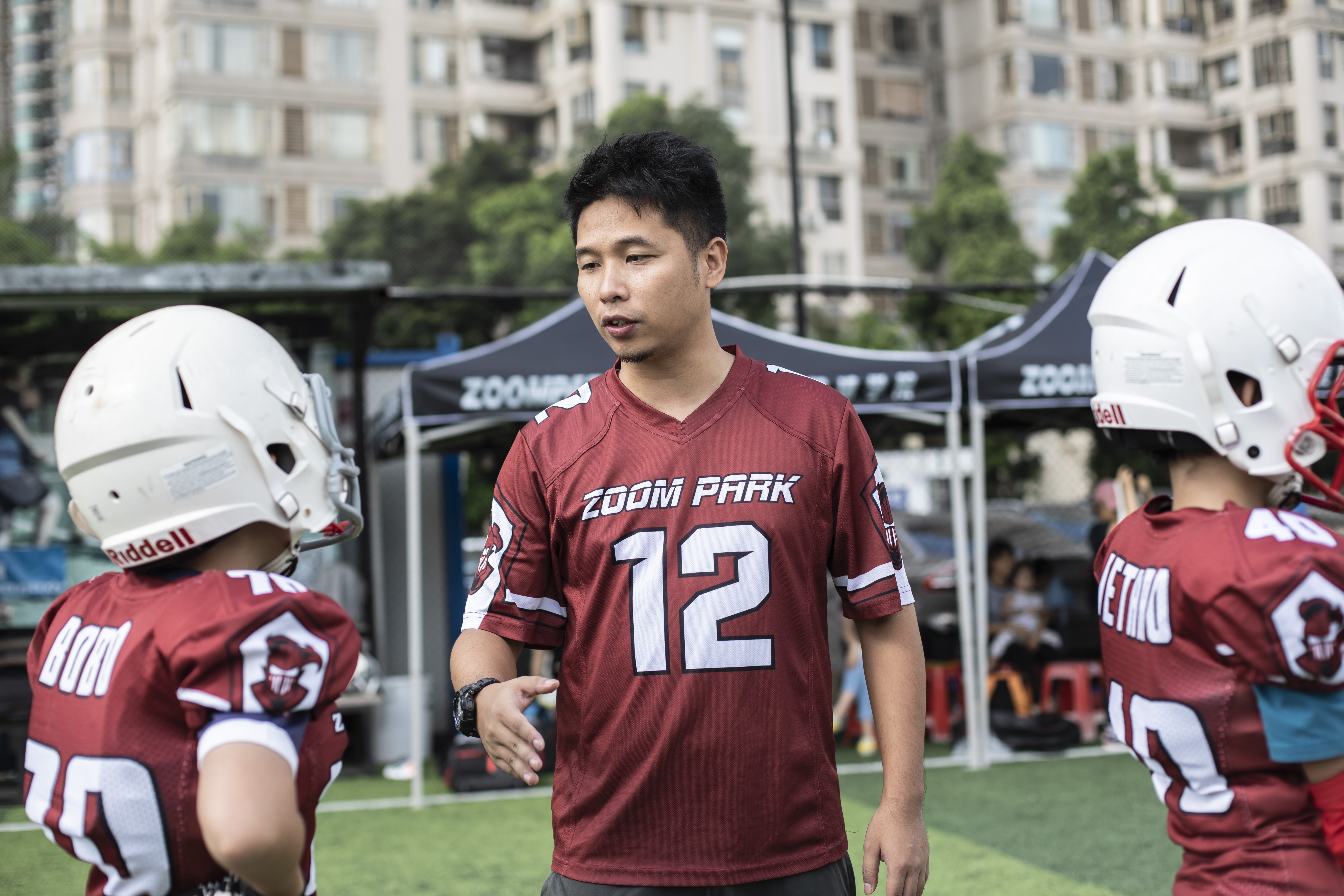 时下,橄榄球运动逐渐在北上广等一线城市受到一些人群的喜爱,但在中国,这项运动仍然属于小众,几乎没有多少人知道橄榄球的各项规则。Anson是一名橄榄球教练,目前在广州从事青少年的橄榄球培训,6月20日,记者来到位于广州塔下的训练场,看到不少儿童正在场地里开展各类橄榄球的训练,尽管烈日炎炎,但大家的热情仍显得十分高涨。