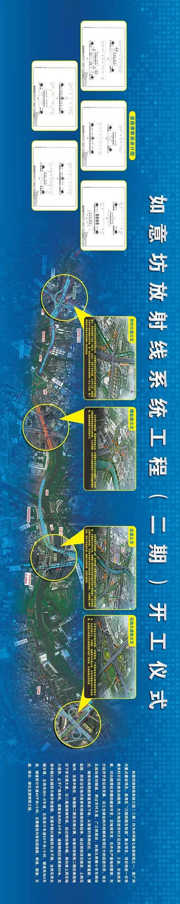 2019年12月21日,如意坊放射线系统工程(二期)项目正式开工。该项目北起如意放射线系统工程(一期),南至广珠西线,全长6.9千米,道路宽度60米,途经芳村大道、广三铁路、穗盐路、花地河、龙溪大道、花地大道等节点,项目计划与一期工程同步完成。