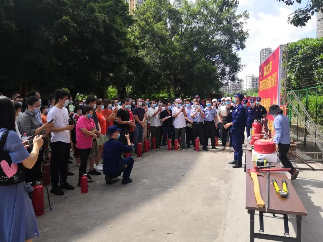 为了熟练各种消防用具的使用方法,消防中队官兵现场讲解消防水带、灭火器、防毒面具、灭火毯等的使用方法,讲解如何应对发生的初期火情,并在现场模拟火灾现场,让参加活动人员参与灭火练习。