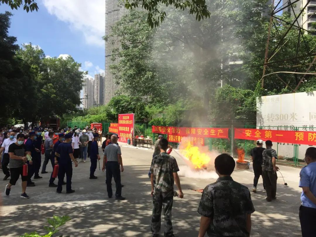 街道辖区各单位企业安全负责人现场参与灭火体验练习。
