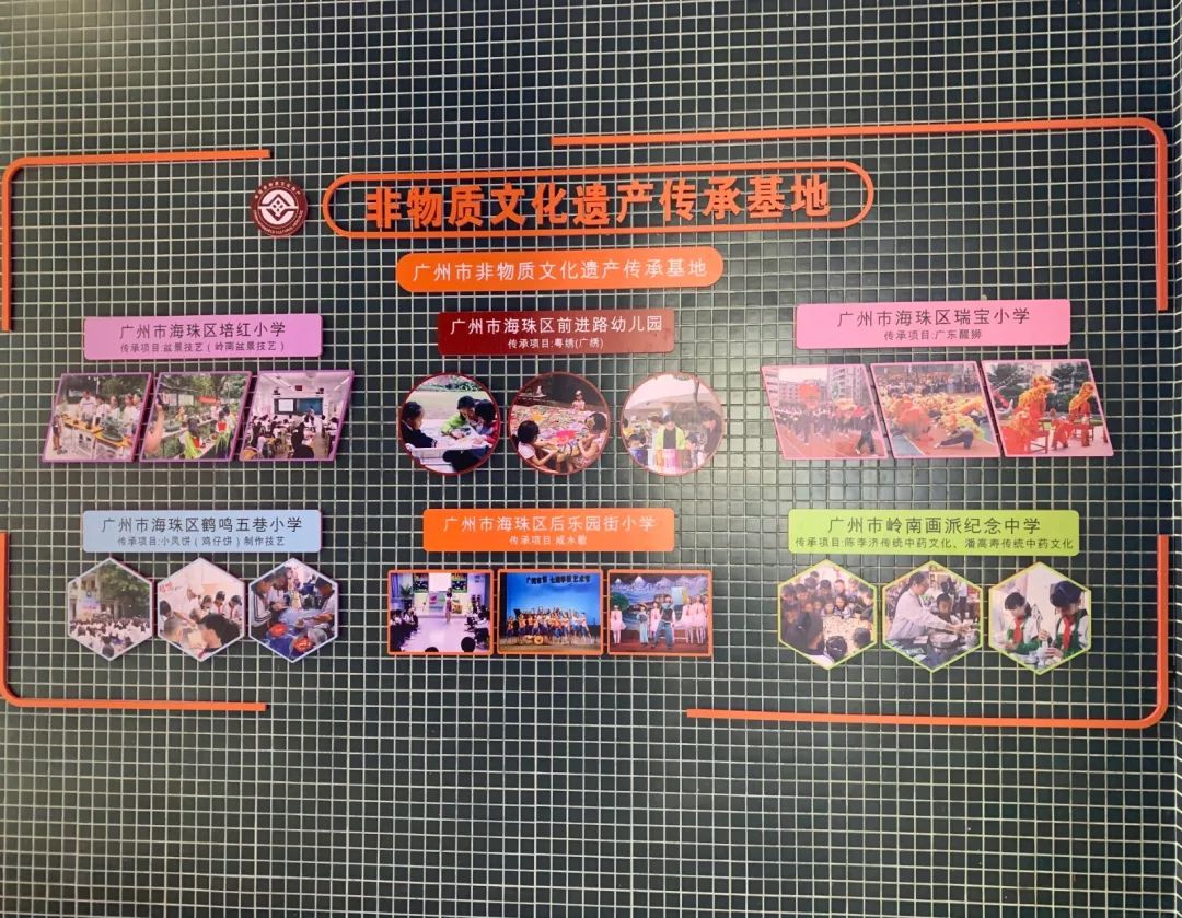 海珠区一直重视非遗工作,截止目前已成功申报联合国“人类口头和非物质遗产代表作”1项、国家级非物质文化遗产名录项目3项、省级项目14项、市级项目23项、区级项目37项,非遗项目数量在全市名列前茅;有国家级项目传承人3人、省级传承人13人、市级传承人25人、区级传承人33人。广东古琴研究会、广州市昭耀榄雕文化传播有限公司入选省级非物质文化遗产传承基地,前进路幼儿园、大元帅府小学等11个单位入选市级非物质文化遗产传承基地,数量居全市第一。