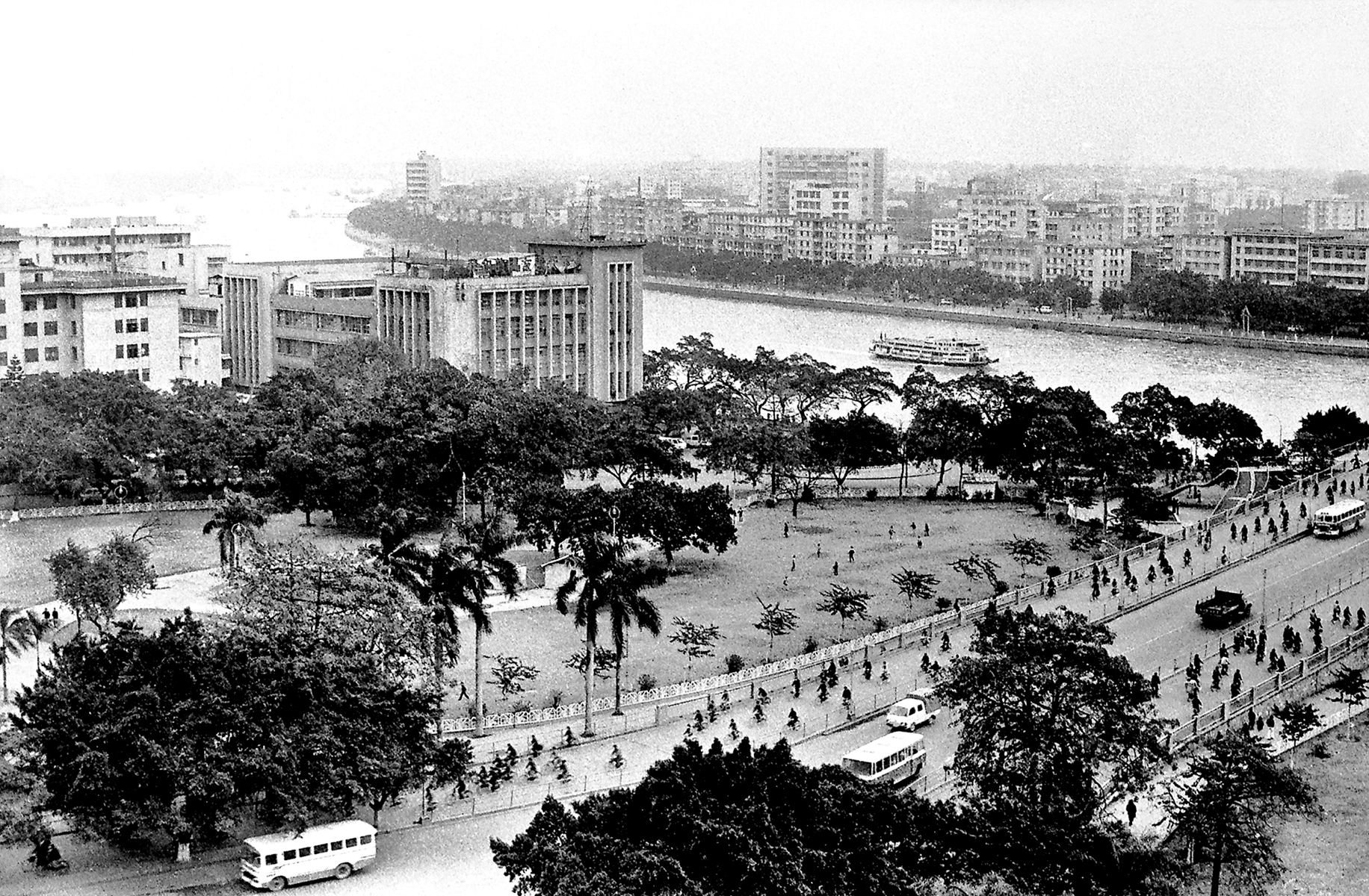 1983年摄 海珠广场东广场 左上部的建筑物是当年广交会的丝绸绾