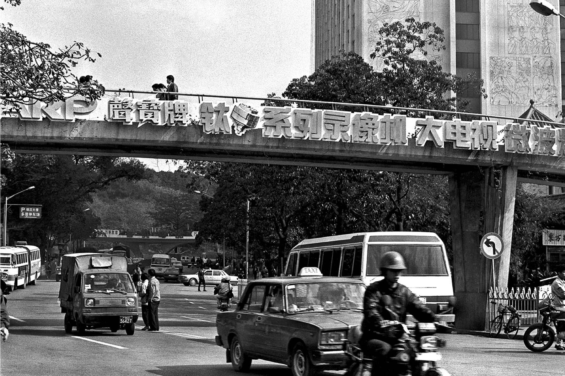 1992年摄 流花路 跨流花路人行天桥,天桥为东方宾馆和中国大酒店往来中国出口商品交易会的来宾提供方便。后来已拆除