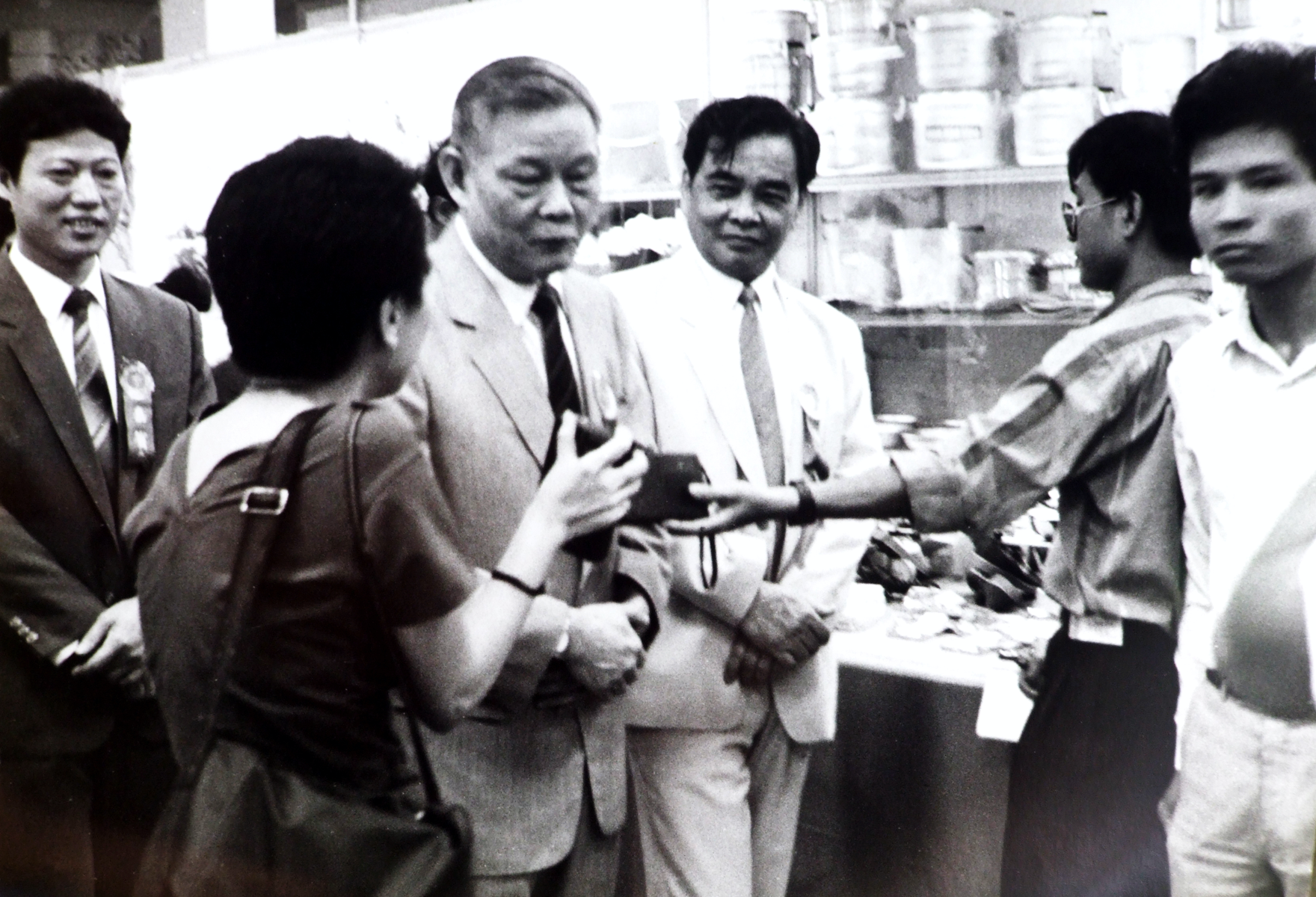 1989年摄 时任广东省省长叶选平在广交会参观珠三角名优新产品展2