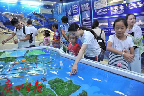 家长带小朋友到珠江口中华白海豚国家级自然保护区内科普学习中华白海豚知识。