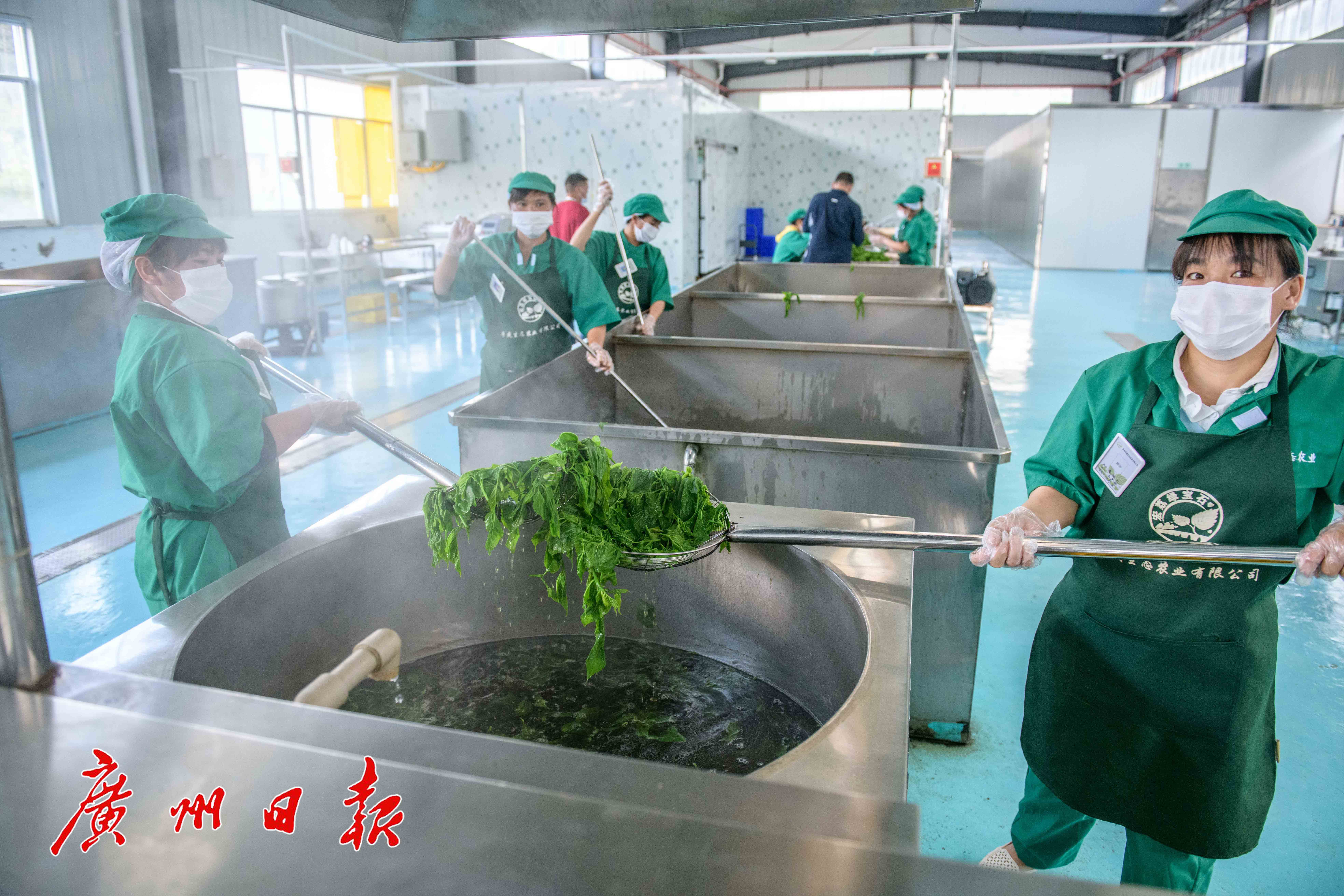 摘下的桑芽被送到小七孔镇播尧返乡创业园里的贵州粤盛生态有限公司桑芽菜标准化加工车间,经过精选、清洗、漂汤、冷却、分包、包装、速冻等工序后,进入冷藏库等待发货,销往广东市场。