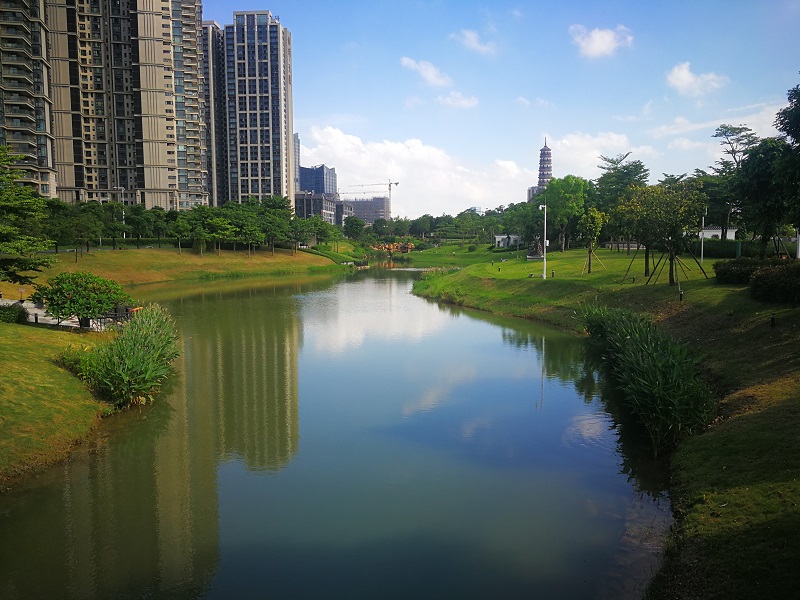 围绕海绵城市体系建设,打造自然天成的生态碧道。坚持以海绵城市理念为引领,在碧道建设中引入全新的排水设计,实现所有雨水先收集于草沟、雨水花园,再通过渗井渗管净化渗透到地下,推动城市暴雨积水问题得到根本解决。通过利用绿色草毯将会展中心、有轨电车与珠水缝合、延伸,打破道路与铁轨阻隔,打造生活、生产和生态一体化空间。在建设过程中实行材料原地回收利用,保护环境、降低造价,保证精准投入。通过在沿河道恢复生态系统,不断提升海珠湿地生态多样性成效,着力构建多样化湿地生态体系。目前,海珠湿地鸟类从72种增加到178种。