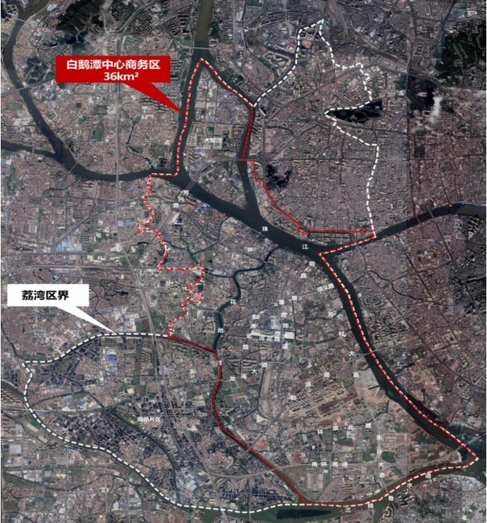 规划范围北至大坦沙,西至荔湾区界与花地河,东至珠江,南至三枝 香水道,面积约36平方公里,其中水域范围6平方公里。