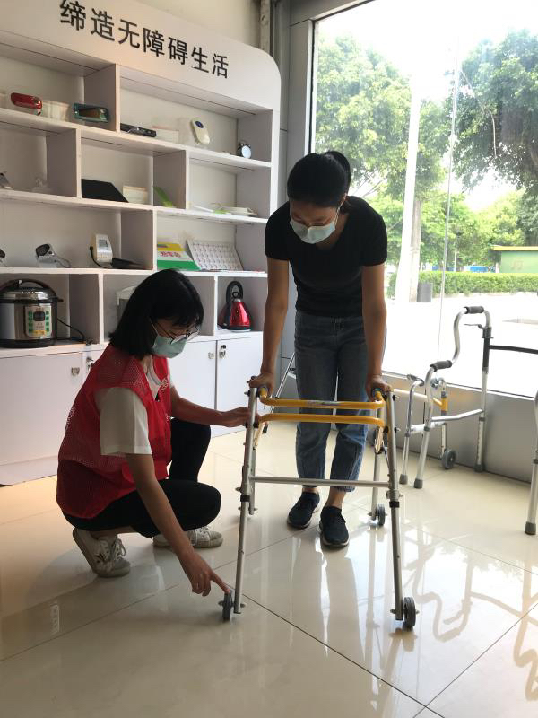 “辅具租赁可满足康复对象短时需求和应急需求,同时也节约了资源。有租借辅具需求的居民,可以到医院先做辅具需求评估,同时我们也配有资质的康复师、营养师可以为大家挑选辅具提供一些建议,有需要的街坊可到现场体验,也可以直接通过线上小程序进行下单租赁。租赁成功后我们可让工作人员送货上门并安装,为大家提供一站式的辅具租赁服务。”东涌镇辅具租赁试点负责人介绍。