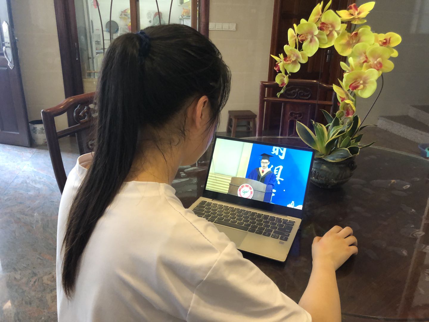 正在线上参加毕业典礼的广州大学毕业生。(图片由广州大学提供)