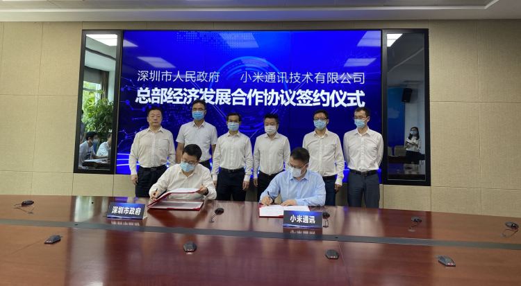 2020年6月24日上午,深圳市人民政府与小米通讯技术有限公司在深圳市市民中心举行总部经济发展合作协议签约仪式。深圳市副市长聂新平、深圳市工业和信息化局及小米集团相关代表出席会议。市工信局局长贾兴东、小米公司副总裁何勇分别代表双方进行了签约。