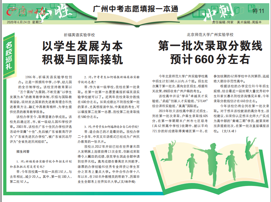 多间学校的老师均表示,特刊对迷茫的考生和家长是很好的指导。白云中学郑老师表示,《中考志愿填报一本通》对家长是有帮助的。他认为,其中指标到校写得很不错,其他内容比如不同分数段的不同填报方法,也对考生有帮助。