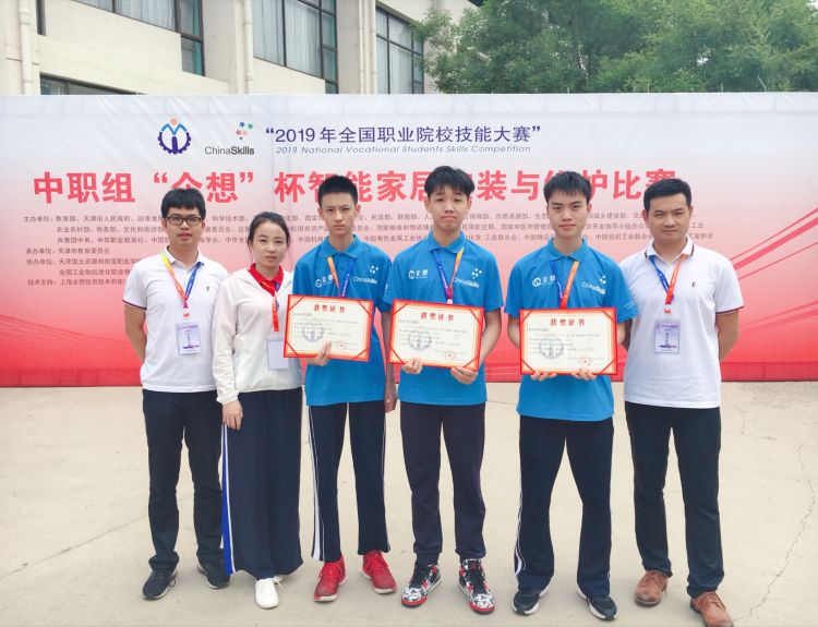 蔡伟、林玉如老师指导黄兆程、符冠华、汤煜彬获得2019年全国职业院校技能大赛智能家居安装与维护二等奖。