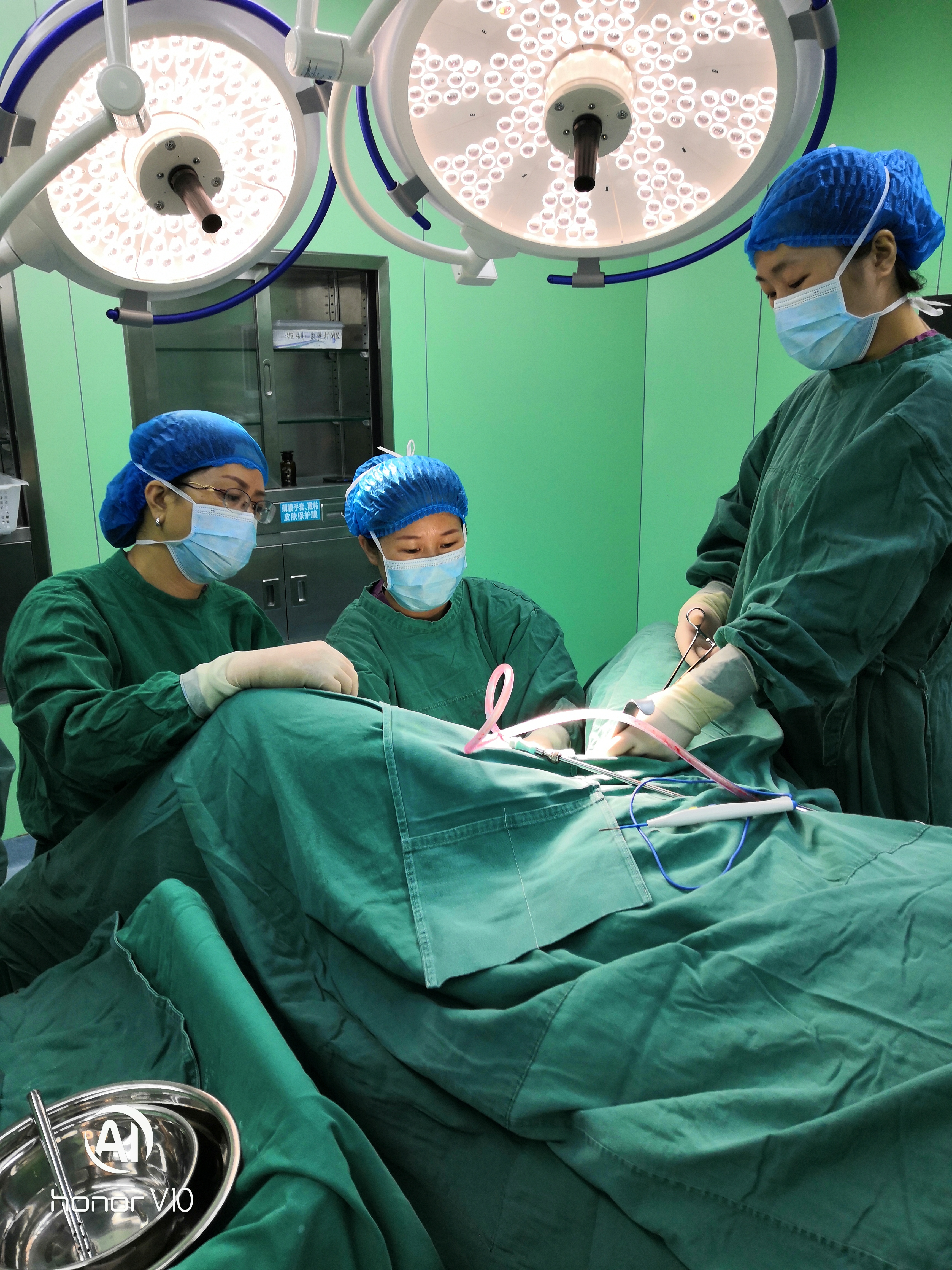 腹腔镜辅助阴式全切,左二为伍霞培养优秀助产士提供更好服务