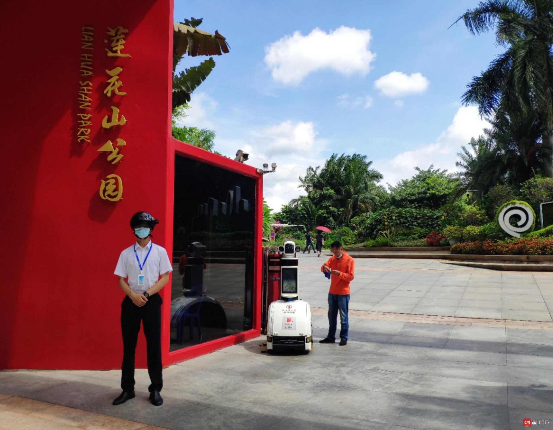位于福田中心区的莲花山公园也是市民节假日青睐的休闲场所。“假期首日莲花山公园共计迎客4.5万人次,人数约为去年同期的一半。”莲花山公园副园长邹卓辉告诉记者,为确保市民安全游园,公园配备了3台无感测温头盔,由安保人员佩戴,对游客开展移动式体温监测,一旦发现游客体温超标立刻报警,并采取相关措施。此外,该院还在公园南门设置智能机器人,语音提醒游客佩戴口罩。对于游客经常使用的地方,如厕所一天消毒4次,游乐设施一天消毒至少2次。