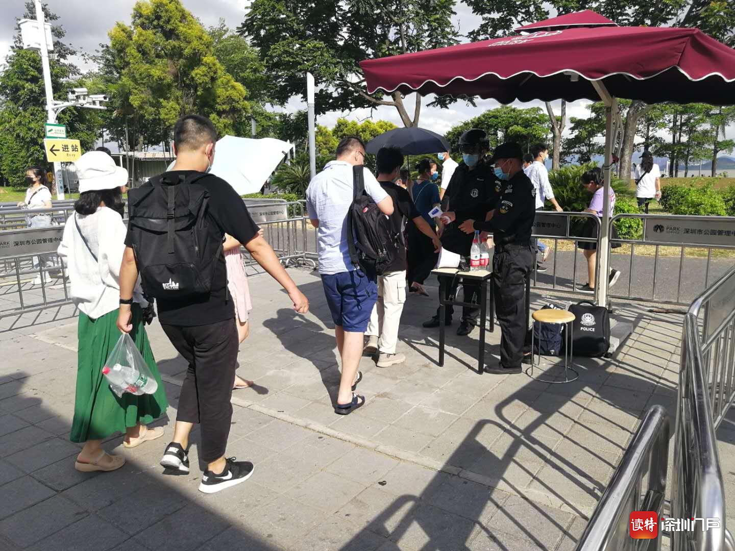 连舜秋告诉记者,为做好疫情防控,深圳湾公园在园区主要出入口设置9个防疫卡点,对入园游客进行体温检测,同时,对没有佩戴口罩的游客还免费提供口罩。在园容卫生方面,公园将持续做好消毒保洁,根据游园人数增幅,及时增加公园的保洁人员和垃圾收运频次,并重点对公厕、儿童游乐和健身康乐等设施做好消毒保洁工作。此外,在人流管控方面,在客流量高度密集的地铁站口,如“深圳湾站”地铁口,还增派保安队员根据客流情况采取分流管控措施。