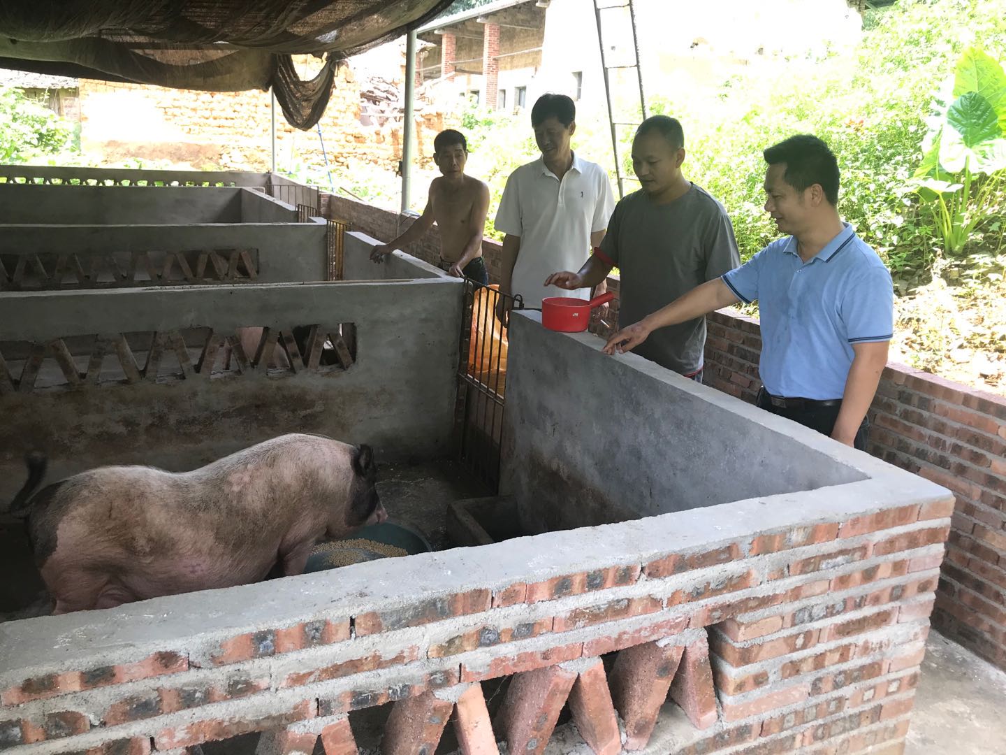 王文蔚(右一)和扶贫干部到李志坚(右二)家里了解养殖情况“要不是王队帮忙找销路,我今年要亏死。”李志坚告诉记者,自己养了1千多只麻鸭,“全靠王队出人出力,最后分两批搞掂,当时疫情来了市场不通,满大街的鸭子贱卖,十来二十块一只,我的还卖40多元一只,相当满意了”。