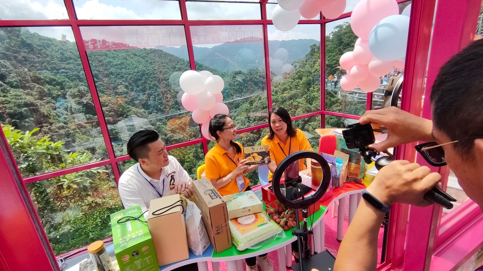 6月28日,世界纪录协会在古龙峡景区正式宣布,世界上垂直高度最大的悬空直播间、世界游览面积最大的高空玻璃组合、世界最多空中项目的景区三项世界认证成功。海拔高度530米的悬空直播间位于古龙峡玻璃大峡谷项目的制高点,也成为2020“清远农家”古龙峡云端直播扶贫助农活动万人瞩目的焦点。清远的“乡村新闻官”是乡村振兴的马前卒,这是他们首次在530米高空,真正在“云端”带货直播,将“清远农家”的优质产品介绍到千家万户,让全世界都能听到清远乡村振兴的响亮声音。