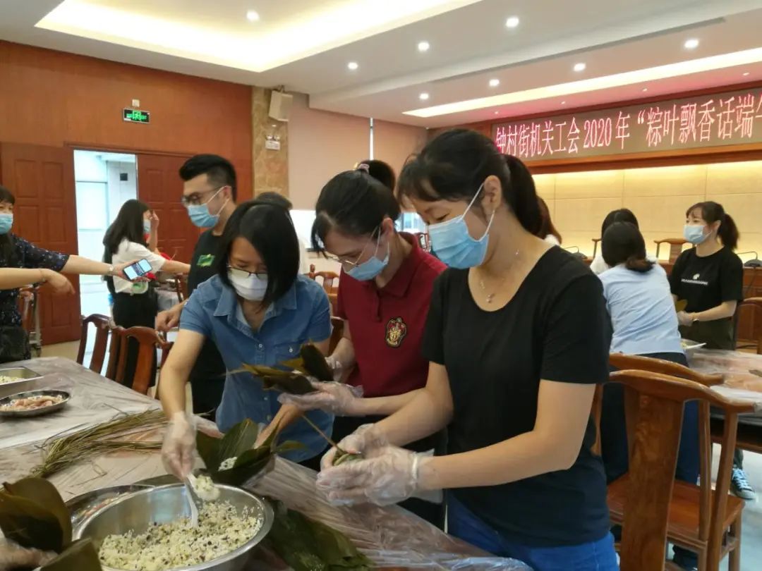 6月23日上午,钟村街机关工会组织干部职工举行了一场“粽叶飘香话端午”包粽子活动。