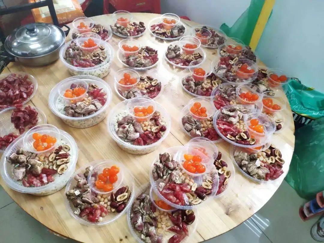 为满足居民们不同的喜好,他们准备了猪肉、咸蛋黄、腊肠、红枣共四种“惊喜馅”,还准备了半蜕壳的绿豆混糯米和纯糯米两种主馅料。无论是喜欢咸粽子还是甜粽子,总能搭配到喜欢的口味。